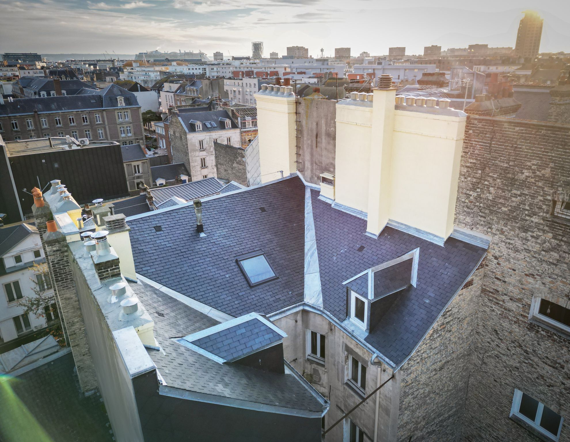 Restauration copmplète d’une toiture complexe sur Le havre pour notre partenaitre OZ Architecture et l’agence Gallieni.
